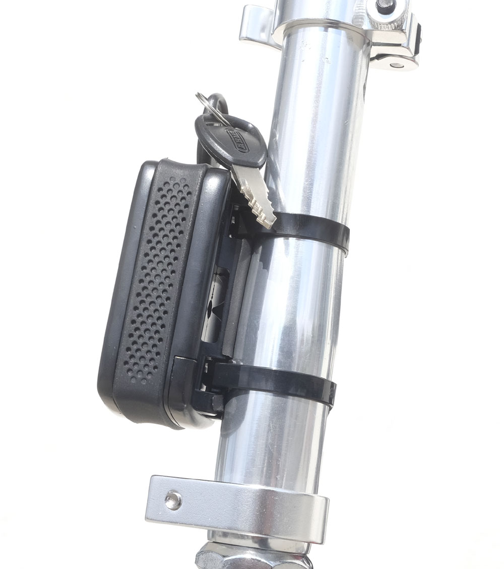 Das elektronische Gerät entfaltet einen intelligenten, stoß- und bewegungssensitiven Alarm für Ihr Objekt – sei es für das Fahrrad, den Grill oder das Werkzeug. Zusätzlich kann das Gehäuse der Alarmbox weitere ABUS Adapterketten oder -kabel als Zubehör integrieren und so weitere Gegenstände sichern. Die Alarmbox 2.0 lässt sich einfach an runden Rohren, zum Beispiel am Fahrradrahmen, anbringen und mittels Schlüssel sichern. Bei leichten Stößen oder Bewegungen ertönt eine kurze, 5-sekündige Warnung. Bei einem anhaltenden Diebstahlversuch löst der 100 dB laute Alarm aus.