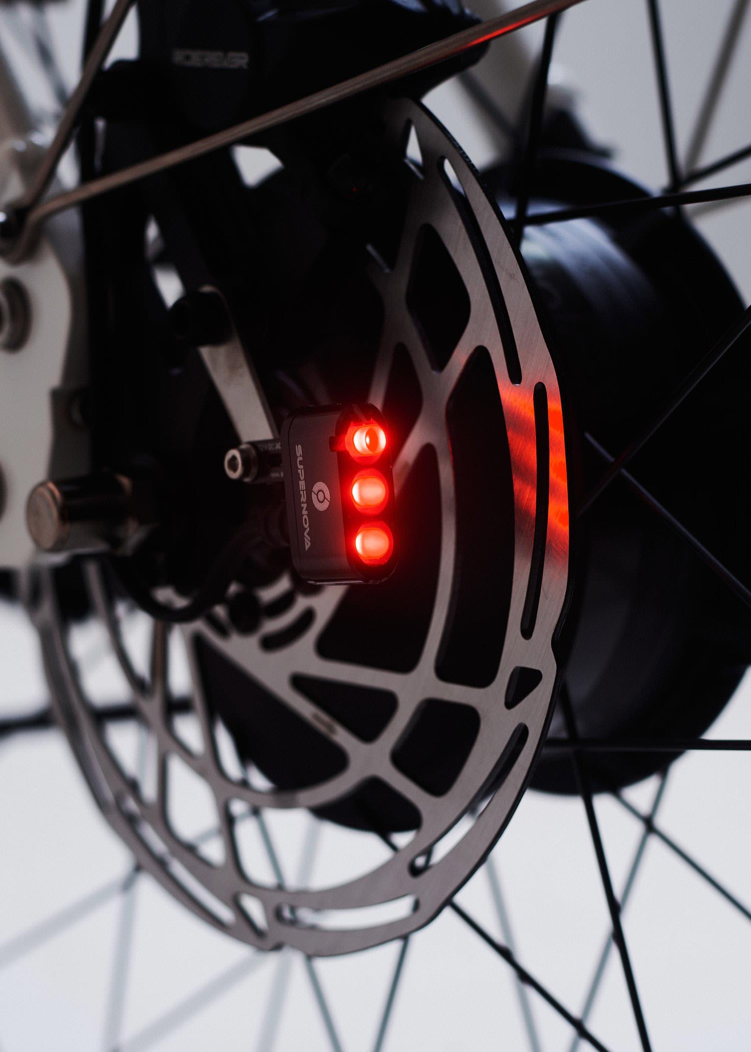 Jeder braucht Licht, wenn er im Dunkeln fährt. Deshalb haben wir die Supernova-Beleuchtung standardmäßig in alle MK1-E Gen. 3 Bikes integriert.