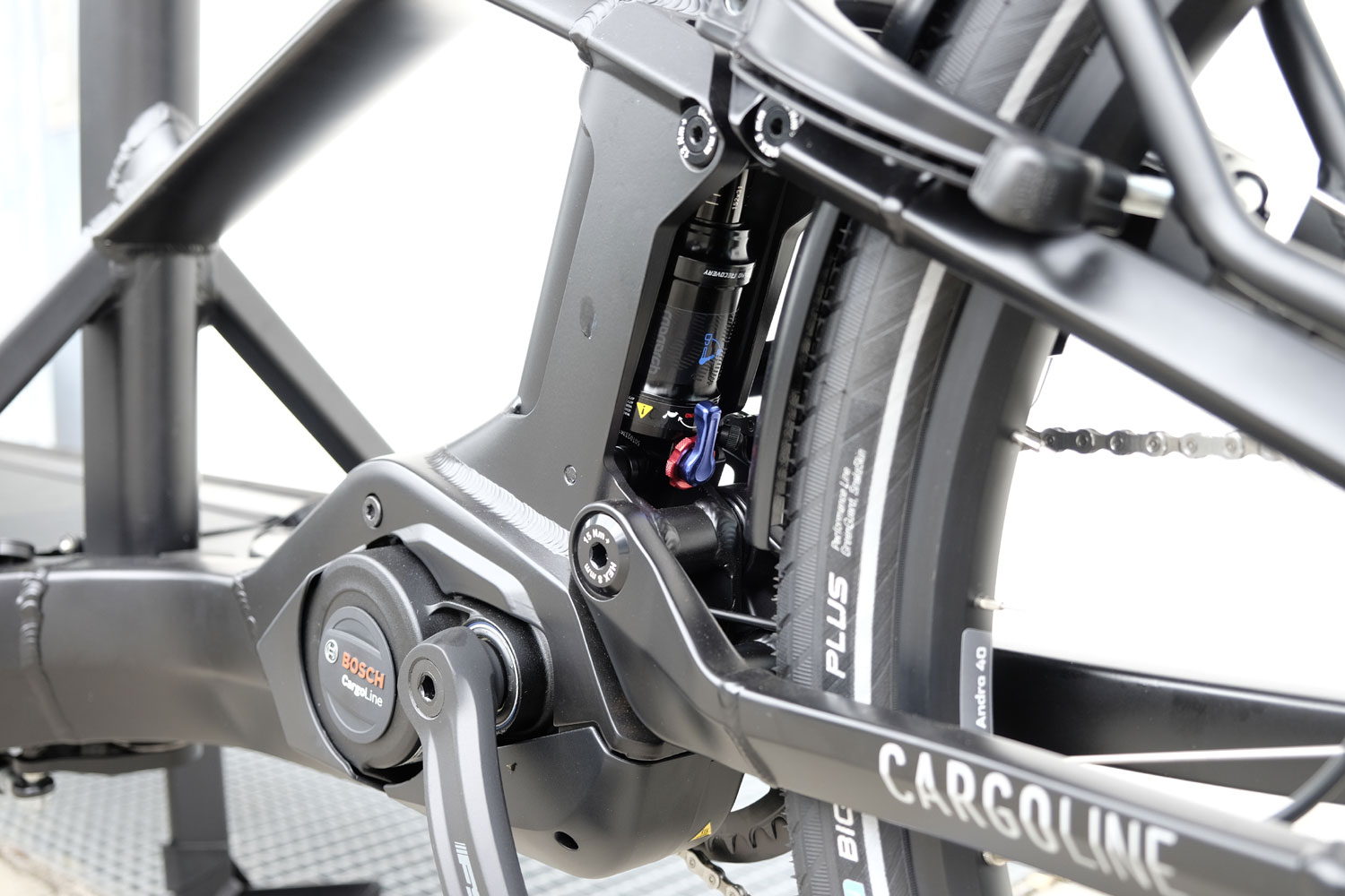 Trotz enormen Ladevolumen fährt sich das vollgefederte E-Lasten Bike komfortabel. Grund ist der hochwertige Aluminium-Rahmen, der mit einem modernen Lenksystem mit Präzisions-Lenkungsnabe in Verbindung mit einer Vorderradfederung bestückt ist. Laufruhig auf verschiedensten Fahrbahnen und wendig in der Stadt. SHIMANO SLX 12-fach Schaltung und die hydraulischen 4-Kolben Scheibenbremsen von MAGURA, die auch hohe Lasten gekonnt abbremsen, sorgen für eine sichere Fahrt. Mit wenigen Handgriffen lässt sich das CARGOLINE FS 800 auf verschiedene Körpergrößen anpassen. Einmal durch den höhen- und seitlich verstellbaren Lenker, zum anderen durch die auf Knopfdruck versenkbare und gefederte Sattelstütze – und das ohne Werkzeug. Perfekt für ein einfaches Auf- und Absteigen. Die neuste Bosch Antriebstechnologie (Smart System) mit dem maximalen Drehmoment von 85 Nm sorgt für Power, das zulässige Gesamtgewicht von 250 kg zügig zu bewegen. Das innovative E-Lasten Bike ist besonders vielseitig einsetzbar. Wahlweise kann eine Metallbox, eine Flexbox sowie ein Child Carrier montiert werden. Dabei ist die Flexbox sowohl für den Lasten- als auch für den Kindertransport einsetzbar. Auch die Fachpresse ist regelmäßig überzeugt vom CARGOLINE FS 800.