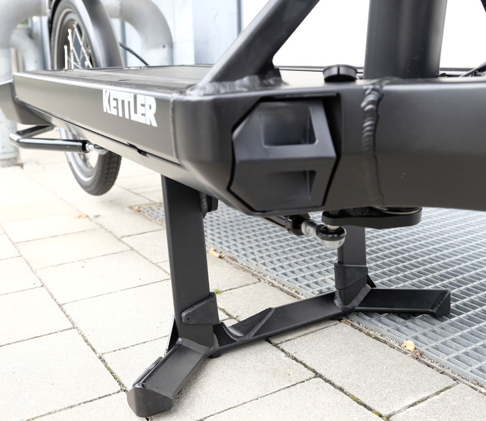 Dieses KETTLER Cargobike wurde konzipiert um schwere Lasten elegant mit klarem Design in höchster Qualität von A nach B zu schaffen. Mit der Vollfederung sind Randsteine und Schlaglöcher auch bei schwerer Beladung kein Problem und schlagen weder auf die Fracht noch den Fahrer durch. Cargobiken vom Allerfeinsten!