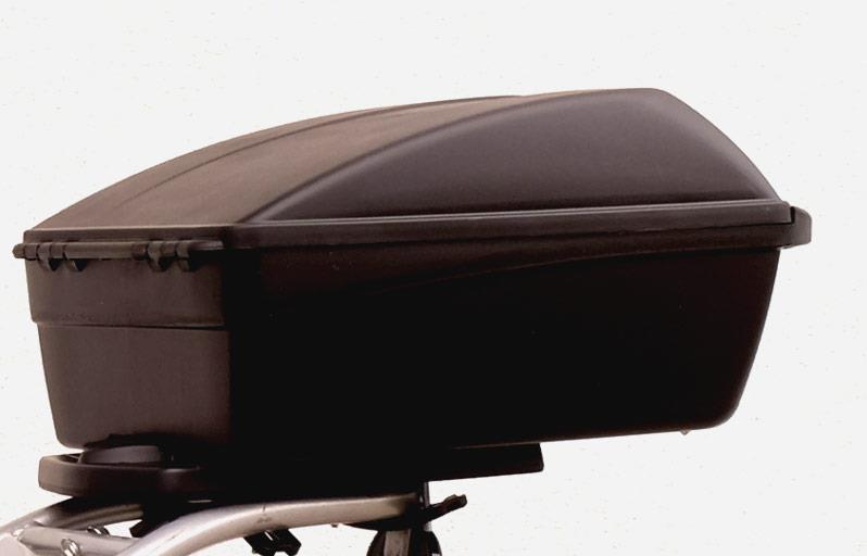 Hochwertige Transport-Box mit Tragegriff zur Montage auf dem Fahrrad Gepäckträger.