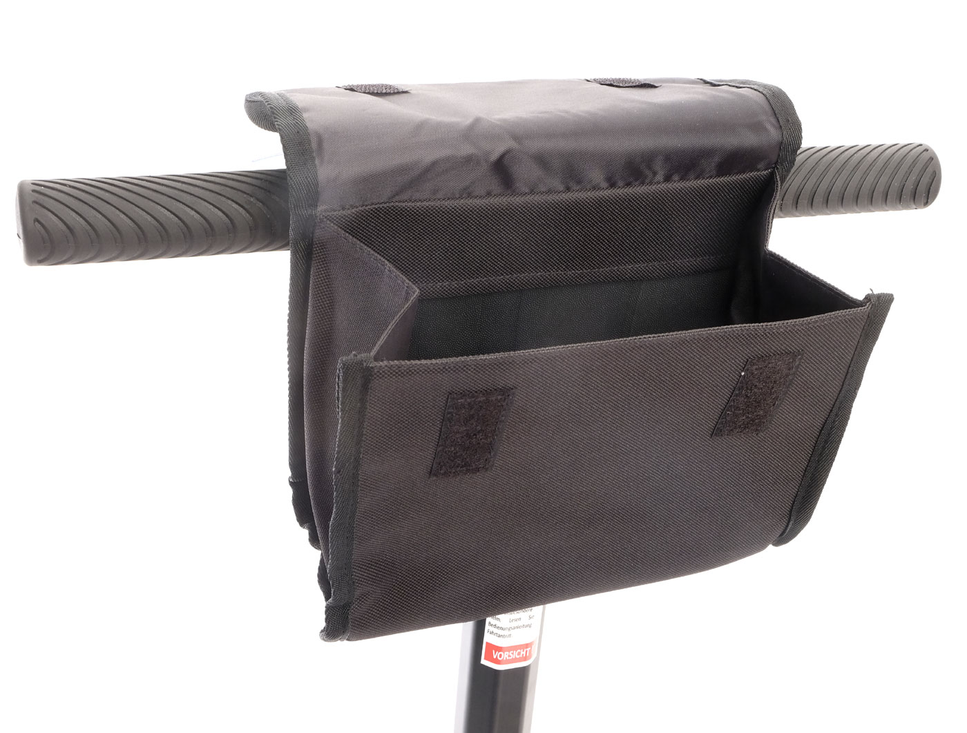 Wasserabweisend, Befestigung mit zwei universell versetzbaren Klettverschlüssen, verstärkter Unterboden, einfach abnehmbar, große Öffnung für schnelles und einfaches Befüllen und Reinigen, Tragegriff, mit Reflexaufdruck, geeignet für Scooter