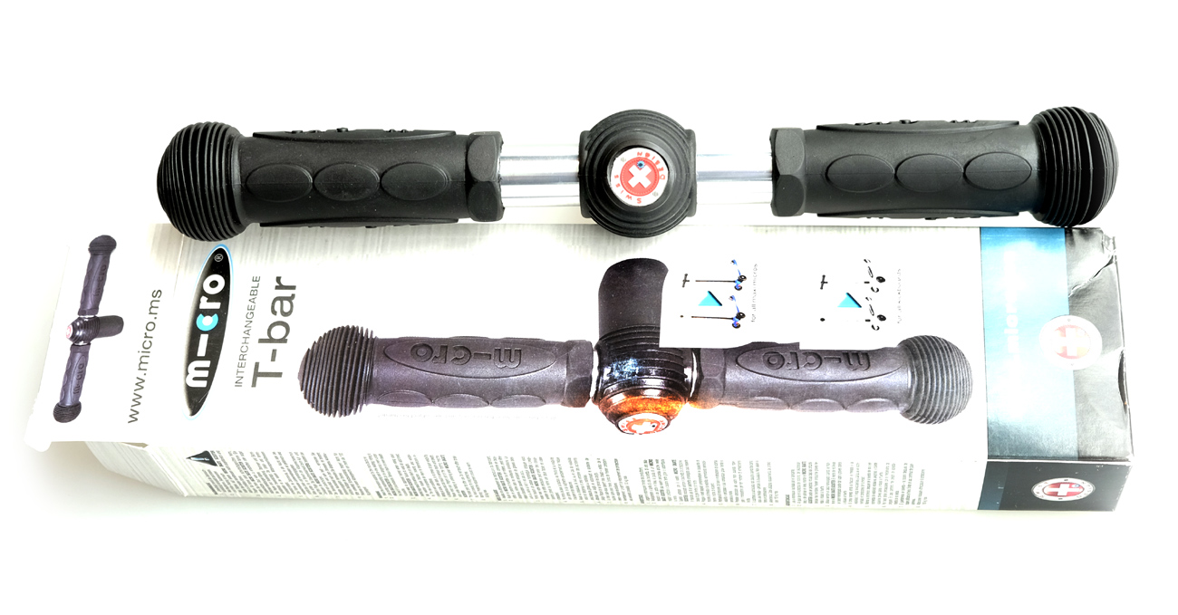 Mit der T-bar lässt sich der Knauf aus Micro Maxis mit Knauflenker oder Micro kickboards mit Knauflenker einfach zu einem T-Lenker umbauen.