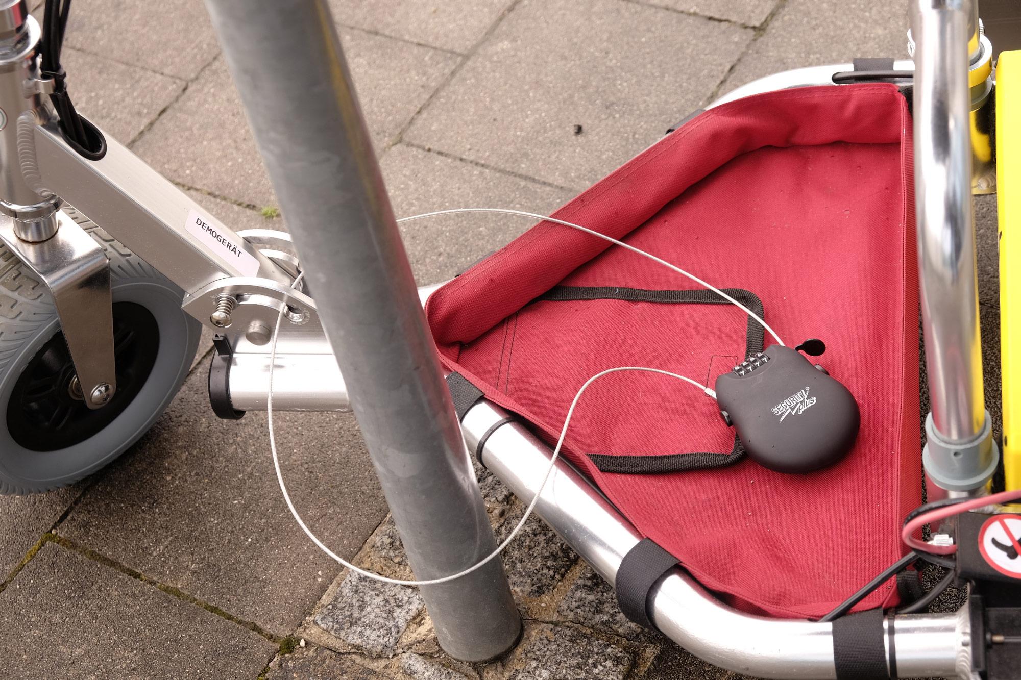 ..in handlicher Groesse mit 1 Meter selbstzurueckfahrendem Drahtseil. Ideal gegen Glegenheitsdiebe bei Scootern, Ski, Snowboard oder Aktenkoffer.