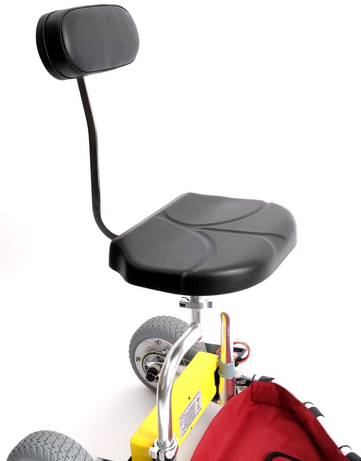 Der neueTravelScoot Escape hat Tiefeinstieg mit äußerst kompakten Maßen von 72 x 54 x 27 cm gefaltet mit extrem leichten 9,4 Kg Rahmengewicht (Rahmen mit Lenker, Motor, Bremsen, Hinterrädern, Lenksäule usw.) und leistungsstarkem Nabenmotor (24V DC 200W), Rückwaertsmodi und Bandbremse, Vorderrad breit mit Steckgabel (1,2 Kg), Sitz mit Sattelrohr und Sitzplatte (1,3 Kg) mit Rückenlehne und Rückenlehnpolster (0,5 Kg) auf U-Bügel (0,4 Kg), demontierbare Fußraster mit Gehstockköcher. Fußraster auf 13,5 cm Höhe (Fußraster nach vorne über Zubehör verlängerte Fußrastermontageblock verlängerbar). Lenkerbreite 41 cm, Bodenfreiheit niedrigste Stelle 6 cm. Höhenverstellbarer Lenker. Höhenverstellbarer Sitz, Sitz mit Zubehör (U-Bügelvariante Wendebügel als optionales Zubehör) nach vorne und nach hinten verlagerbar für kleine und große Personen.