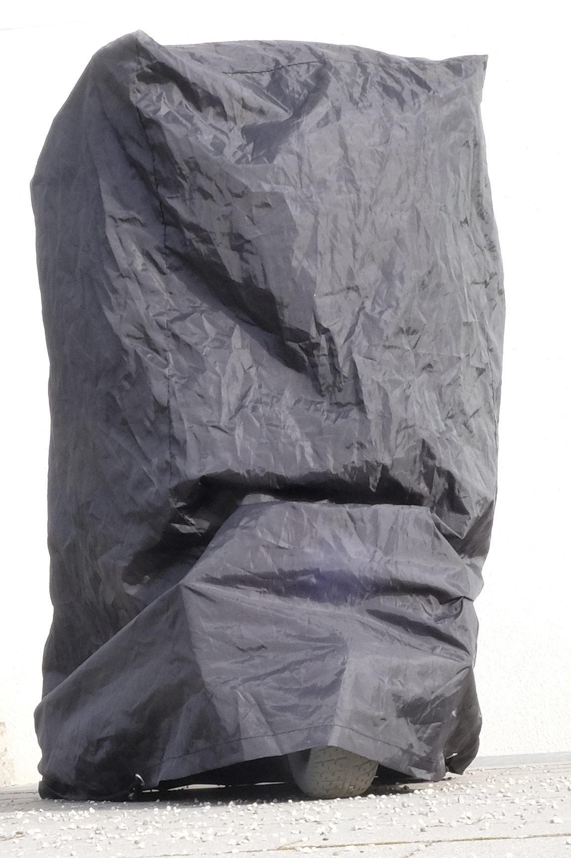 ...der Ueberwurf Regenschutz aus gewebtem Kunstfasermaterial.