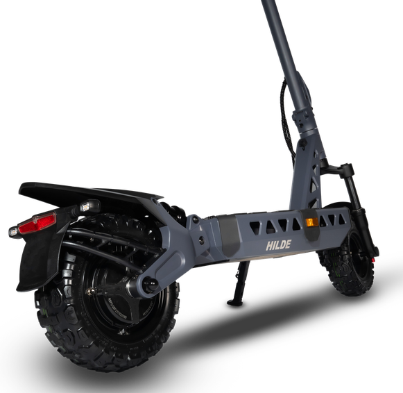 Hilde hat einen der kürzesten Bremswege aller straßenzugelassenen E-Scooter in Deutschland. Ihre hervorragende Bremsanlage besteht aus einer progressiven Motorbremse mit E-ABS, zwei 160 mm großen vollhydraulischen Scheibenbremsen und einer separaten dosierbaren Motorbremse. Diese kannst du im täglichen Gebrauch nutzen, um verschleißfrei zu fahren. Sobald du den Bremshebel ziehst, wird automatisch die Motorbremse zugeschaltet, die dich mit ihrem intelligenten E-ABS in kürzester Zeit zum Stehen bringt! Und das Beste dabei, sie rekuperiert! Gewinne so Akku beim Bremsen zurück.