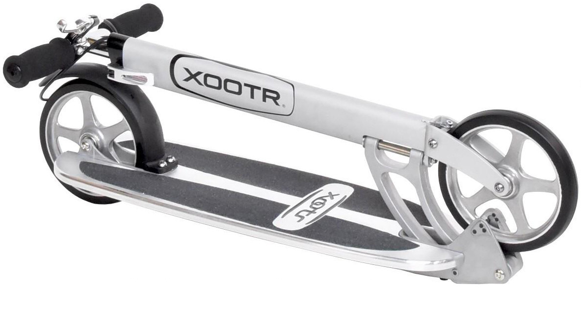 The Xootr Street is for those who want the best of the best. The deck is CNC machined from a solid block of 6061 aluminum with anti-slip die-cut grip tape applied, providing a light and "bulletproof" structure and supporting over 800 lbs (363 kgs). It provides a super solid ride and the "tank" of our line-up. We say that because the Street has the highest yield strength (3,000lbs +) compared to our other models. Indeed, one customer called to tell us their spouse ran over their Street model scooter with the car and it escaped unharmed. The wide deck provides comfortable cruising, allowing you to have both feet side by side on the deck unlike other adult kick scooters such as the Razor A5 Lux, Know-Ped, or Micro. This is the scooter that Time magazine reviewed and proclaimed that "The Xootr is the Rolls Royce of scooters."