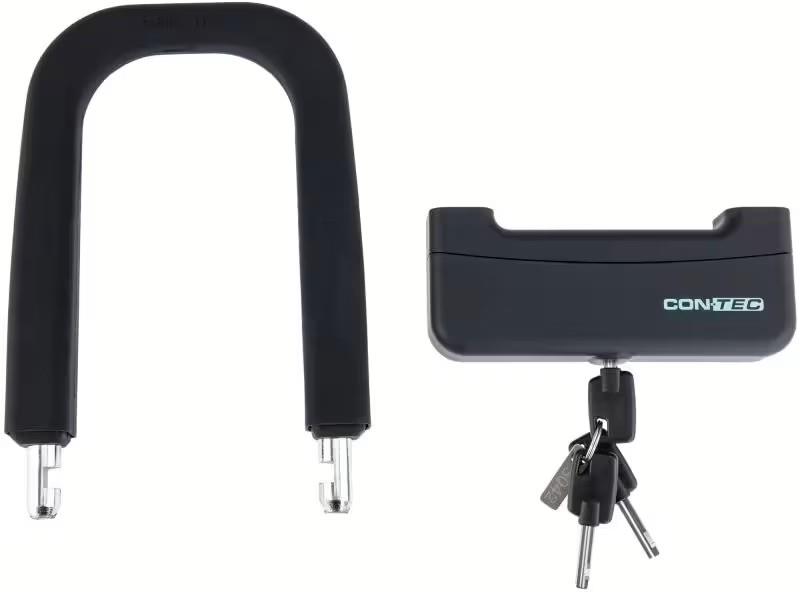 DX1 BLACK: Robust & widerstandsfähigDas CONTEC "SLoc" Bügelschloss ist genau die richtige Wahl, wenn du dein E-Bike oder Fahrrad oft und auch länger an öffentlichen Orten abstellst. Das Schloss ist dank seiner Stahlkonstruktion und der starren Bauform besonders robust und widerstandsfähg. Dank des Silikon-Covers bleibt auch der Rahmen frei von Kratzern. Außerdem kann das "SLoc" daher jeden Tag und bei jedem Wetter genutzt werden, denn es ist resistent gegenüber UV-Strahlung und trotzt jedem noch so starken Regen. Mit zwei Wende-Schlüsseln. Sicherheitsstufe 8/10