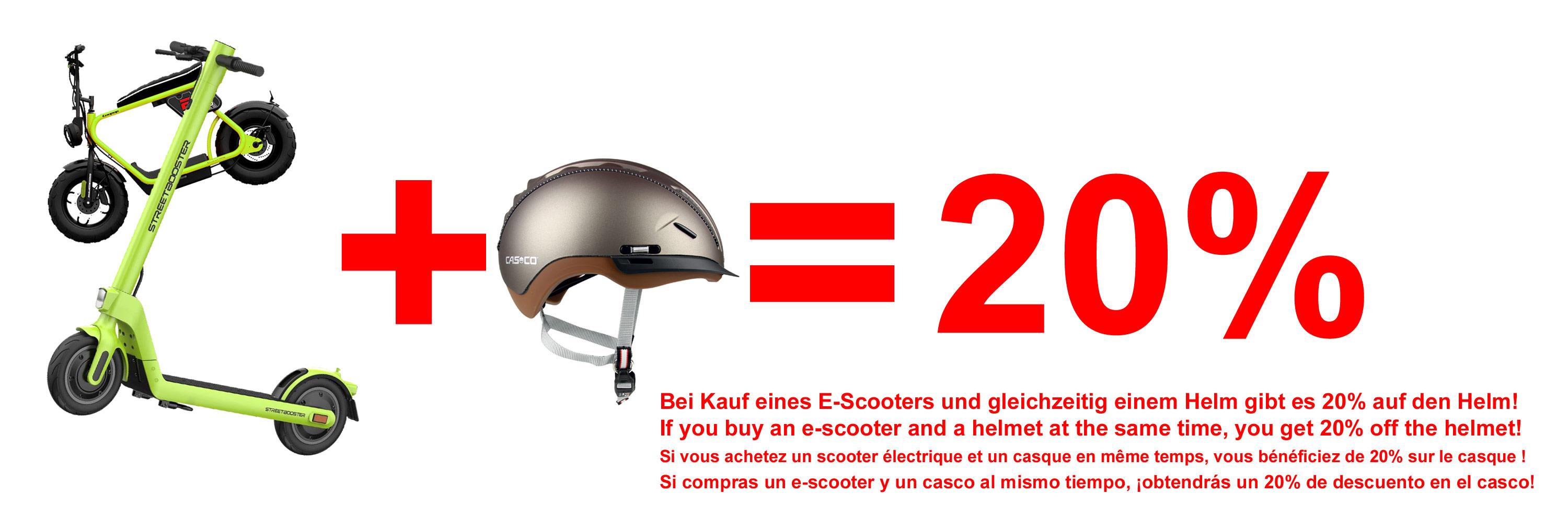 Bei Kauf eines E-Scooters und gleichzeitigen Helmkauf gewähren wir 20% auf den Helm!
