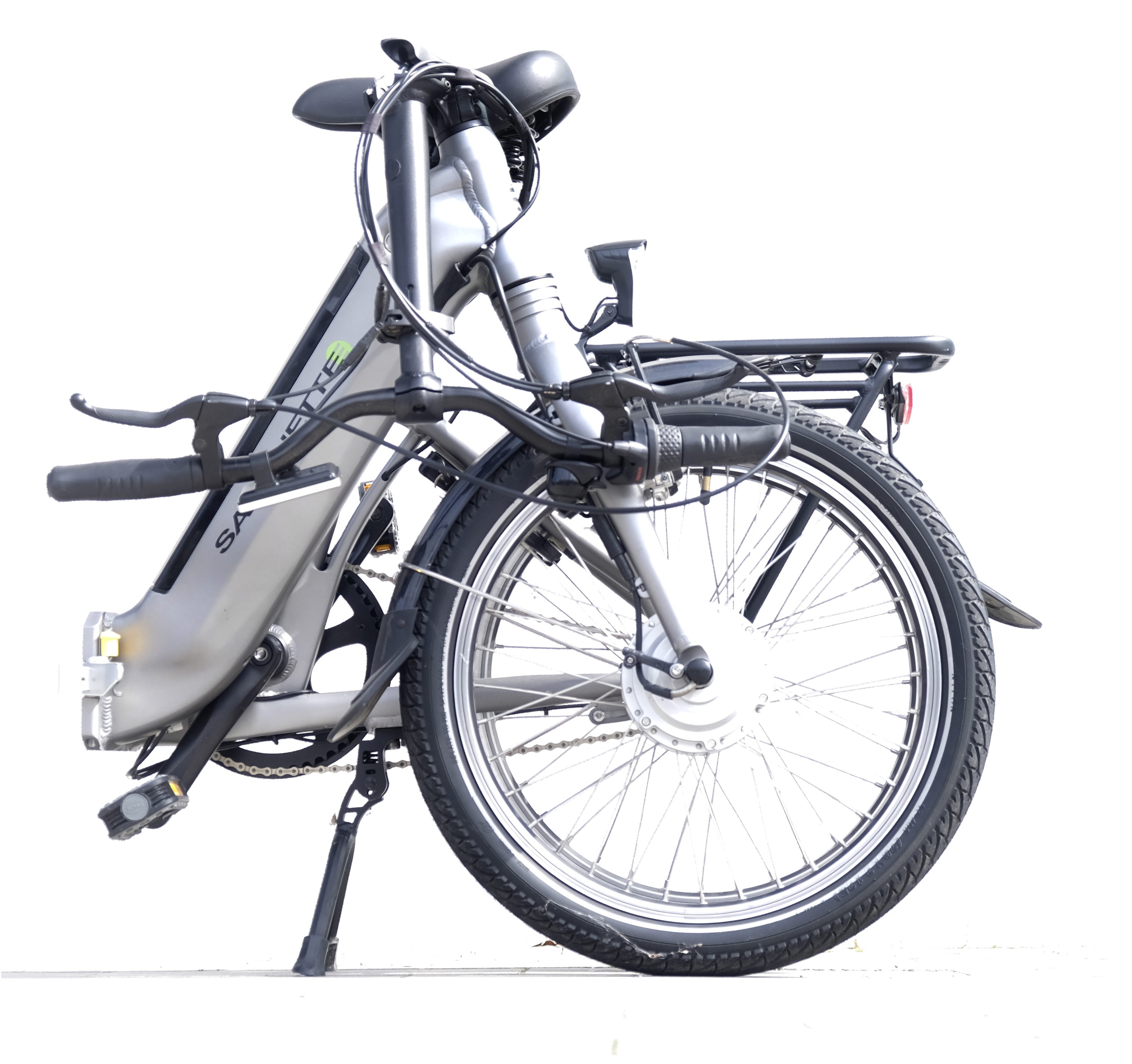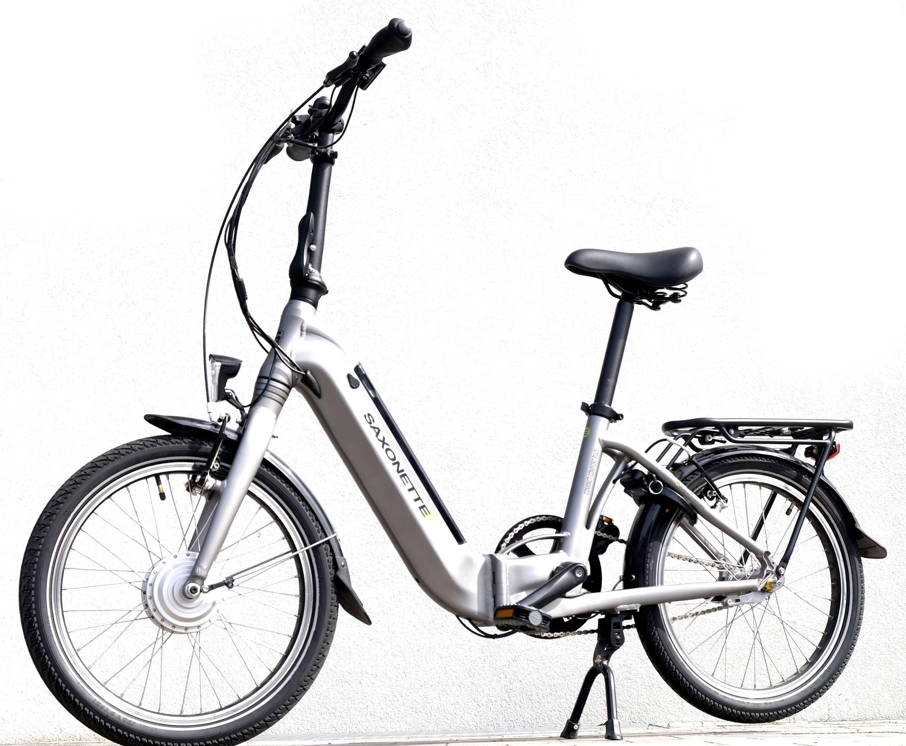 Ausstattung: Vollausstattung nach STVZO, Komfortsattel, Gepäckträger, Klingel, Schutzbleche, faltbare Lenkeinheit, integriertes Rahmenschloss