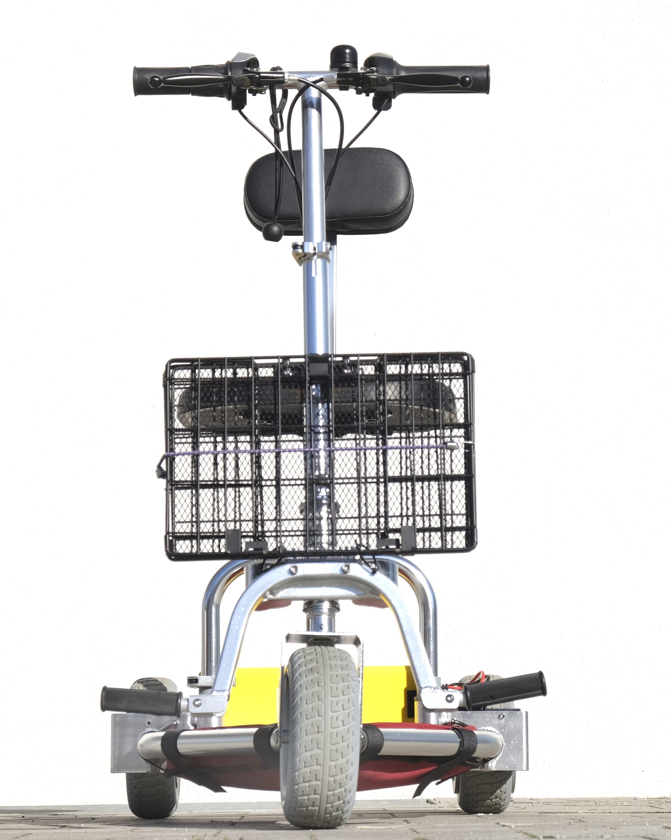The entire TravelScoot Escape weighs only ~ 15 kg with battery, carries 155 kg and can be easily folded without tools.