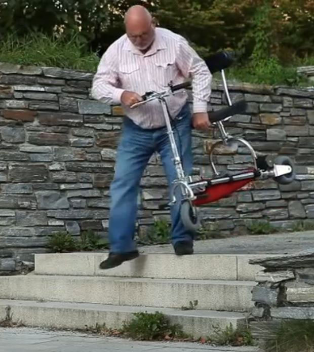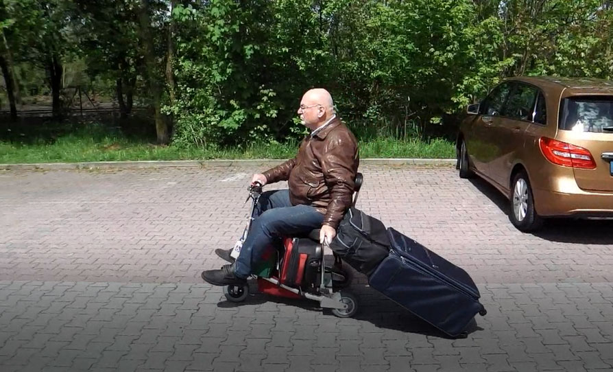 The entire TravelScoot Escape weighs only ~ 15 kg with battery, carries 155 kg and can be easily folded without tools.