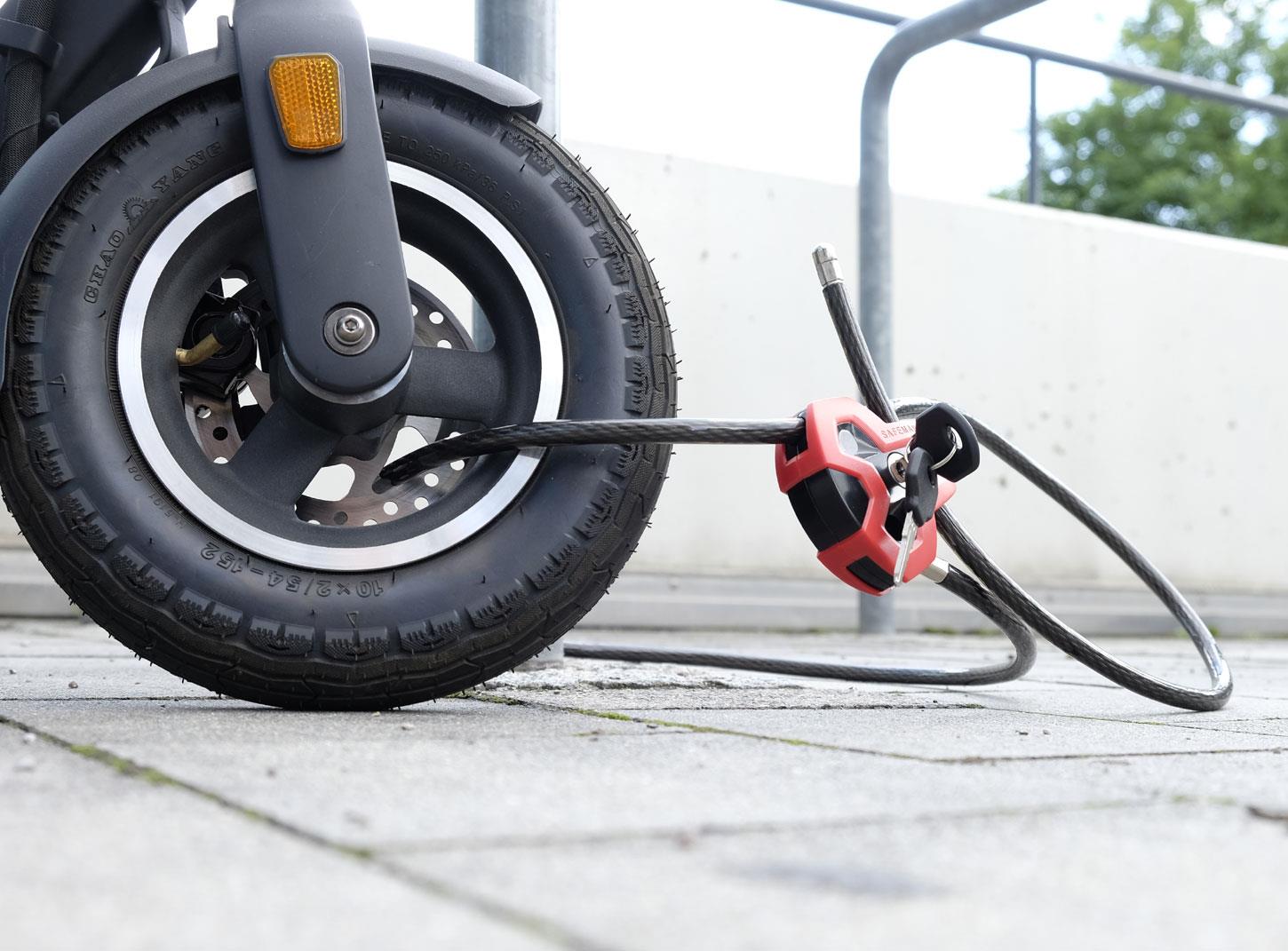 SAFEMAN-T le nouvel antivol à câble avec la fonction brevetée de fermeture et de fixation.