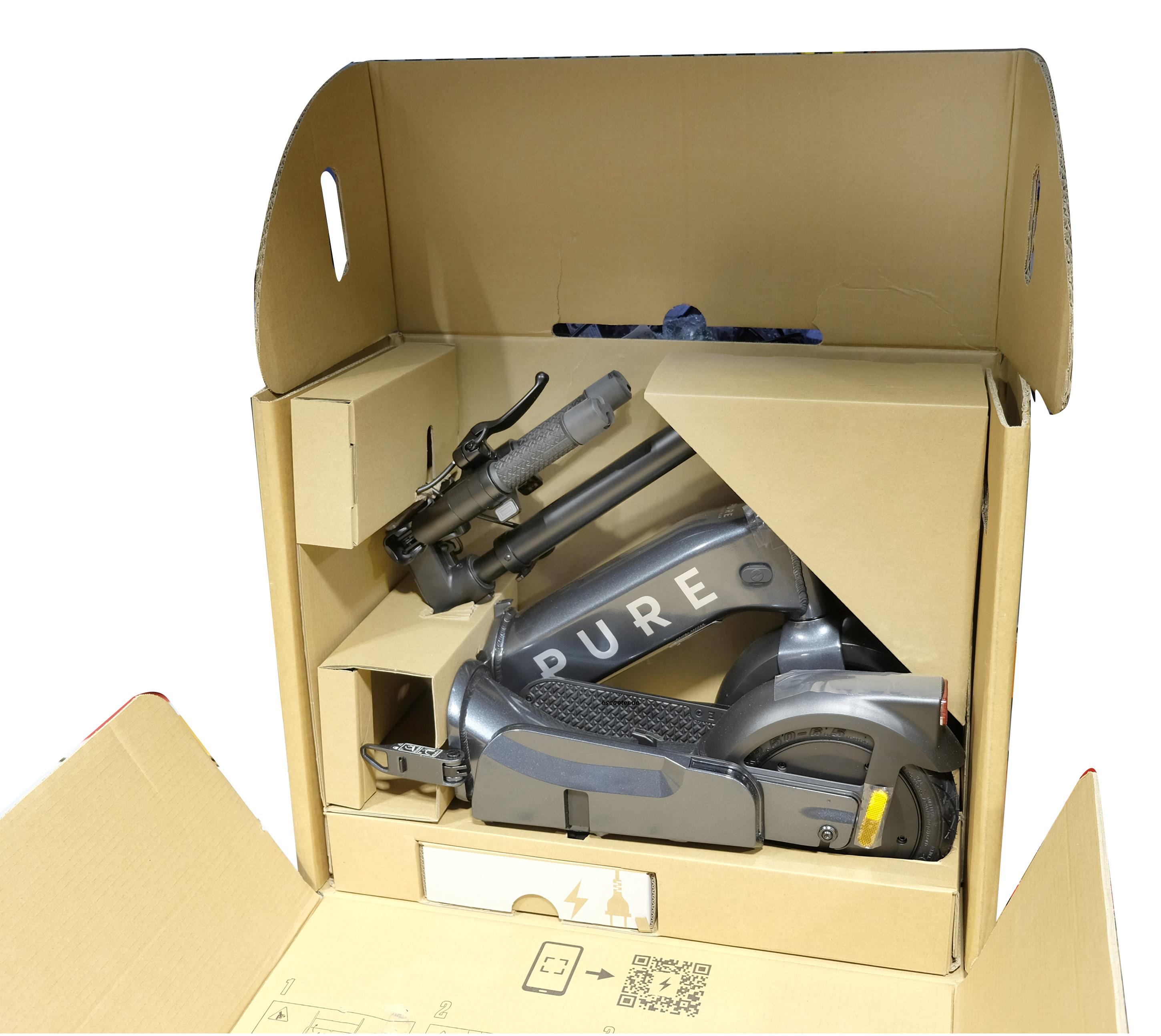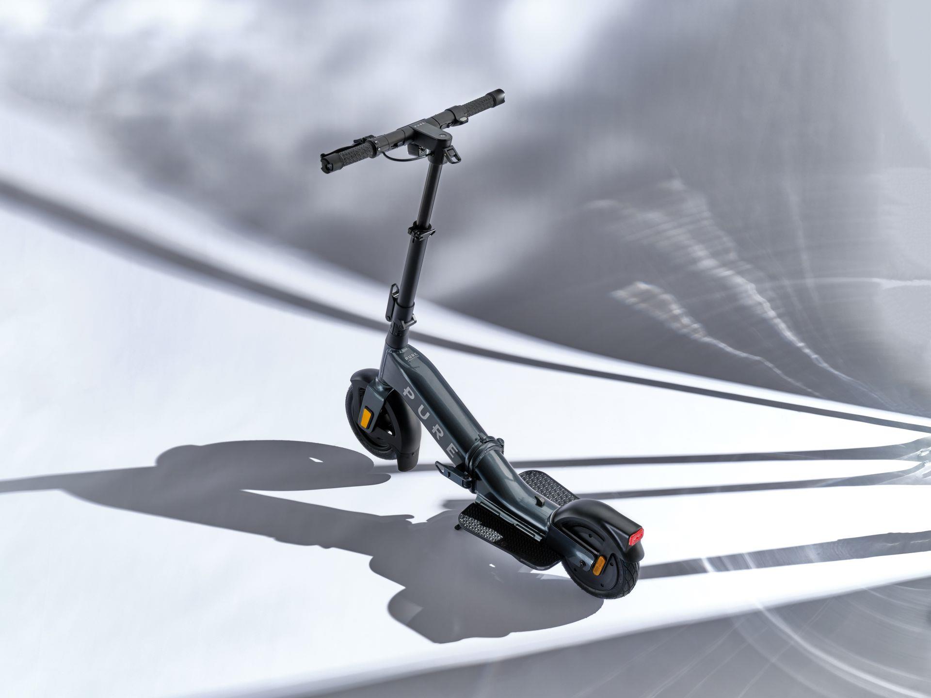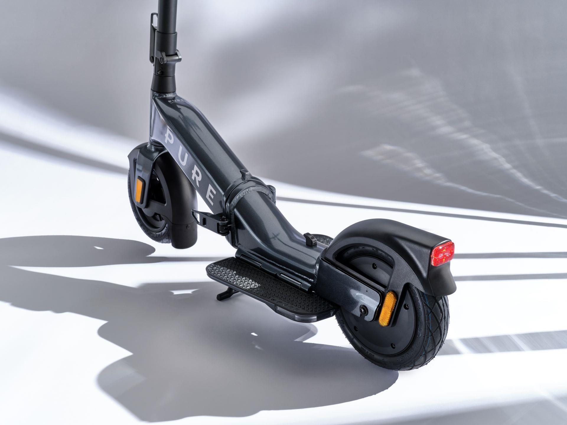 Tu peux facilement ranger ton scooter électrique PURE Flex dans une voiture ou dans une petite pièce de ta maison. De plus, le scooter électrique est pliable.