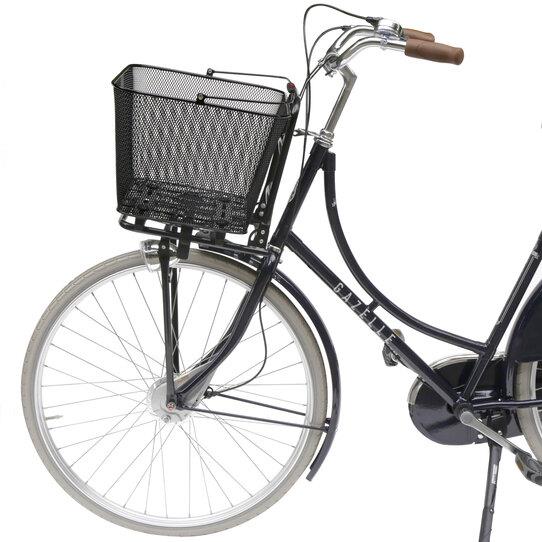 Extra großer, feinmaschiger Korb, besonders geeignet für Frontgepäckträger. Durch die innovative KorbKlip Schnellbefestigung kann der Korb auf Träger von 9–40 cm Breite und mit Ø 10–16 mm geklickt werden. Mit Tragegriff.