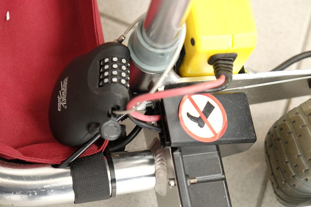 ..in handlicher Groesse mit 1 Meter selbstzurueckfahrendem Drahtseil. Ideal gegen Glegenheitsdiebe bei Scootern, Ski, Snowboard oder Aktenkoffer.