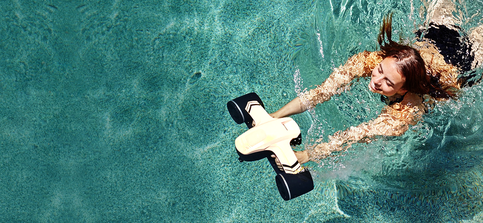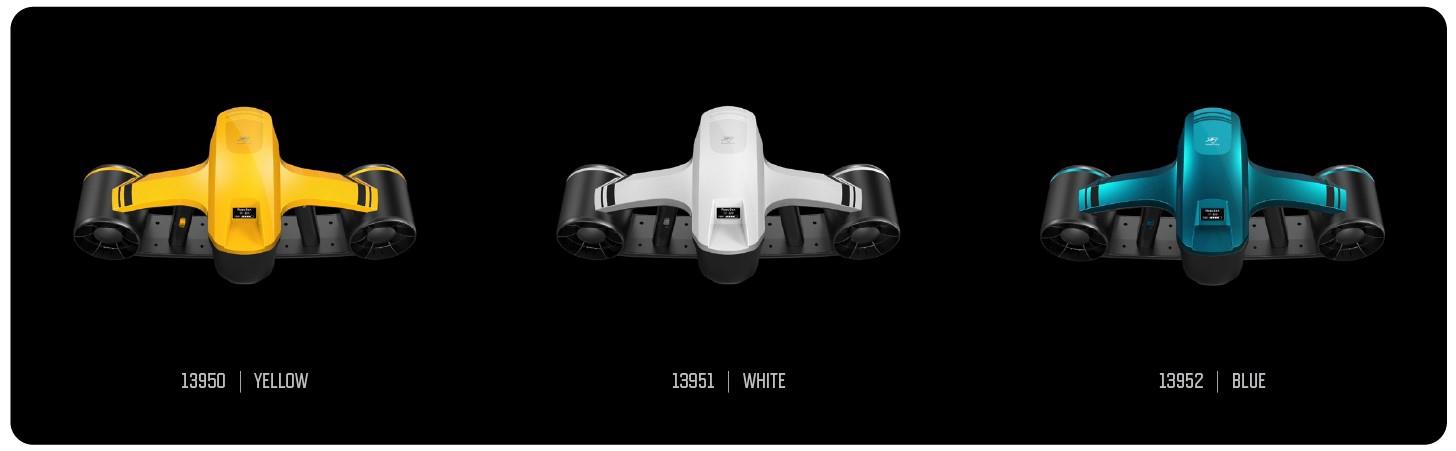 Set besteht aus 1 x SeaFlyer Tauchscooter, 1 x Ladegerät und 1 x Akku, 1 GoPro Halterung.