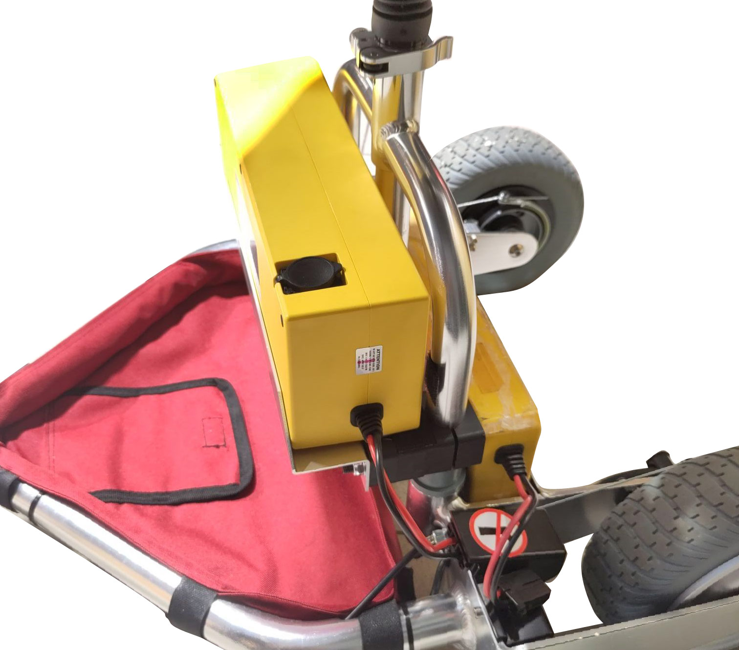 Frage : Wie wird dieser Akku am Travelscoot Escape montiert / befestigt? Er ist viel breiter als die für den Akku vorgesehene Halterung wo die beiden kleineren Akkus hineinpassen.