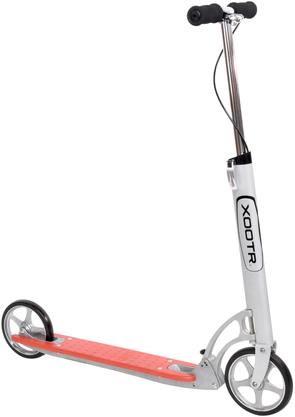 High-End Kickscooter. The XOOTR DASH is the newest model in our kick scooter line-up. Some would think that this in our "entry level" model, but there is nothing entry level about it. This foot scooter is built on top of the same frame structure and uses the same large and fast polyurethane wheels as all our other models. The deck is made from a plastic material that is available in two colors: blue and red. Don't be fooled by the plastic deck, the Dash push scooter can still support over 800lbs (363 kgs).