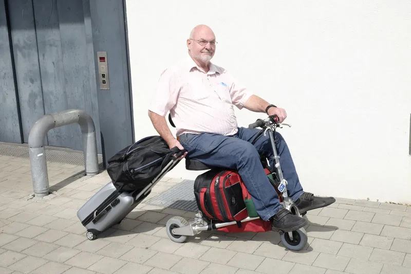 Der TravelScoot ™ Escape ist mit 14,8 kg (einschließlich des Lithium Akkus und Sitzes) weltweit mit Abstand das leichteste und kompakteste Elektromobil. Perfekt für Alle, deren Füße nicht mehr so richtig mitmachen aber ansonsten noch in einigermaßen guter Verfassung sind.
