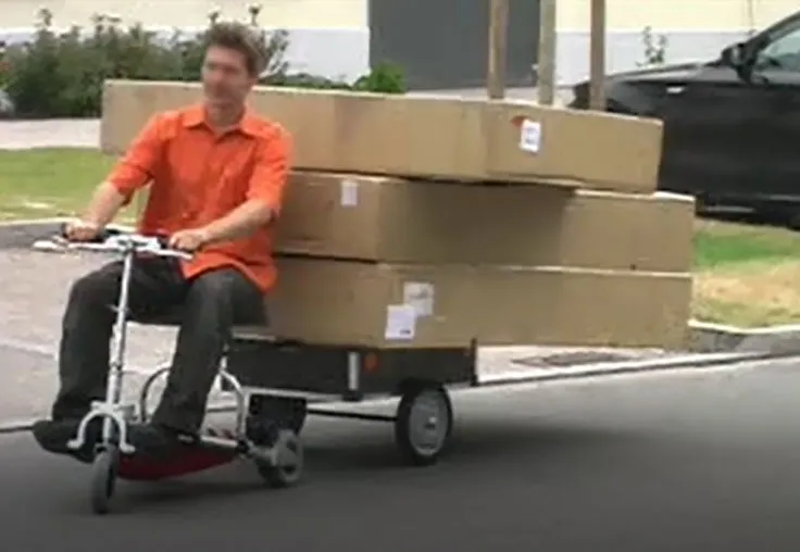 Anhaenger superleicht in Flugzeugaluminiumqualitaet, inkl. Kupplung - zerlegbar auch hier und extraleicht im Gewicht. Als Tandem - Personenanhaenger mit aufgebautem Sitz kann jetzt eine 2. Person am TravelScoot mitfahren oder schnell umgbaut auf die Lastenplattform kann alles erdenkliche befoerdert werden wie Hundeboxen, Einkaeufe, Gartenabfaelle usw. Zuladung Personen bis 110 Kg. Nur 5 Kg ohne Sitz und 7 Kg inkl. Sitz montiert. Maße des Trailers = 112 l x 53 b x 28 h. Ladeflaeche 62 x 42 cm. ! Nicht für öffentlichen Straßenverkehr zugelassen ! Wichtige Hinweise. Nicht über 100 kg belasten. Bitte beachten Sie die gesetzlichen Bestimmungen.Personentransport auf Anhängern ist auf der Straße nicht gestattet. Fahren Sie im Anhänger-Modus mit reduzierter Geschwindigkeit und nicht rückwärts.Auf Steigungen/Gefälle und auf unebenem Untergrund bitte absteigen, Unfallgefahr Falls keine Person auf dem Anhänger steht, Diesen bitte abkoppeln. Da der Anhänger sehr niedrig ist, besteht die Gefahr dass andere Personen Diesen übersehen und darüber stolpern.