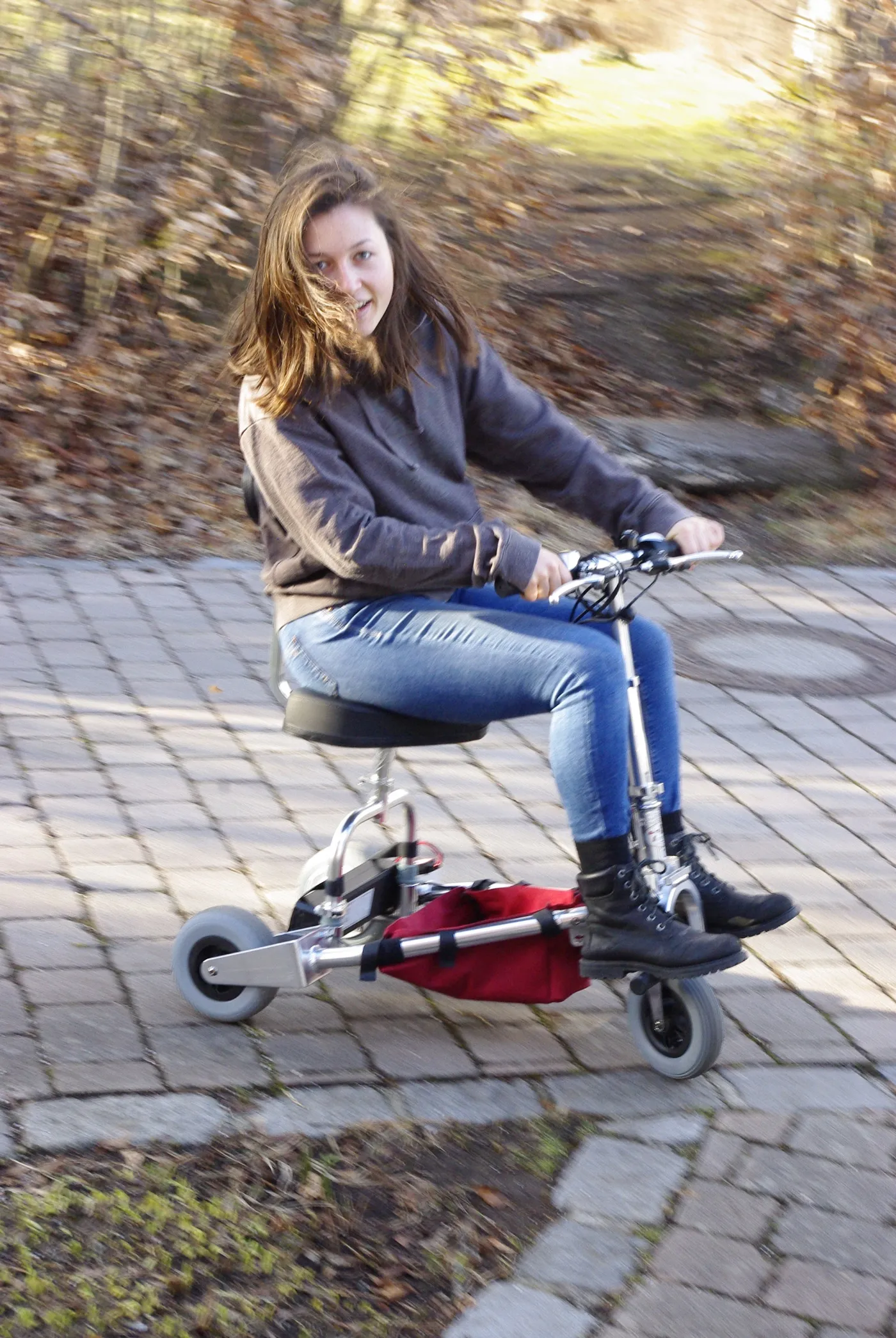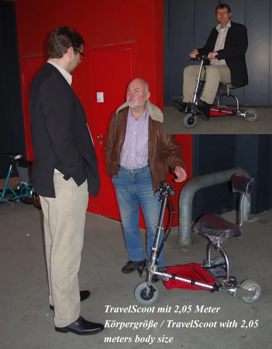 Der neue 2-raedrige TRAVELSCOOT 2W ist gehwegtauglich, mit jahrelang erprobter TravelScoottechnik (gleicher Motor wie beim 3-raedrigen), d.h. 200 Watt Nabenmotor mit toller Steigungsleistung (15%), Drehhandregler mit 3-LED Akkustandsanzeige, Lithiumakkusystem 151 Wh mit Panasonicakkuzellen und speziellem Lithiumakkuladegeraet inklusive, pannensichere reibungsarme PU Vollgummibereifung.Maße gefaltet: ~75x19x26 cmUltraleichtbau: - 9,6 Kg mit entnommenen Vorderrad- 10,8 Kg fahrbereit komplett als Stehroller+ ggf. Sattelsystem (inkl. Sattelfederstütze) 1,6 = 12,4 komplett mit Sitz.