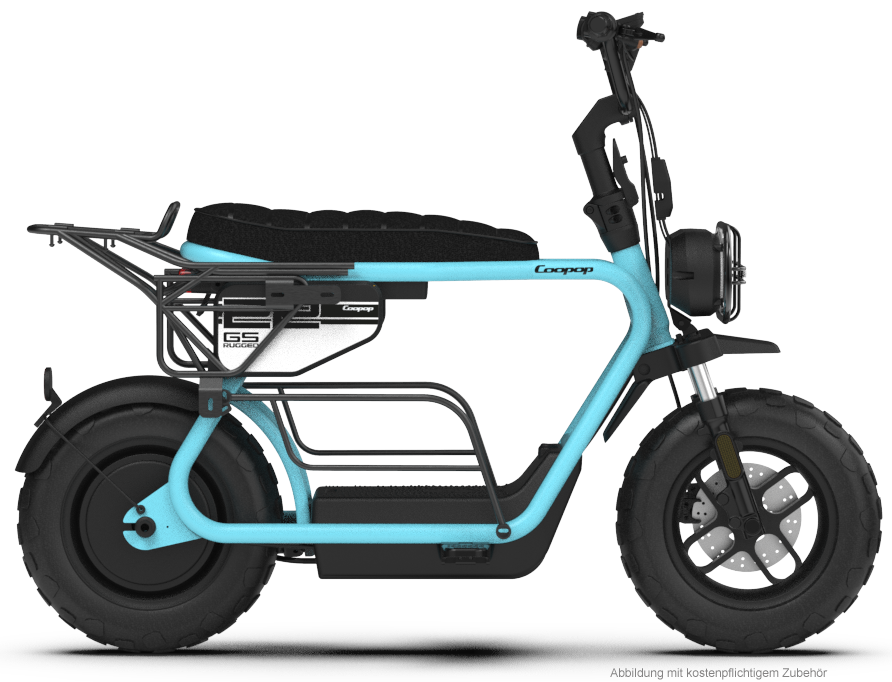 Discover the Coop Rugged GS electric scooter - your perfect companion for unforgettable adventures. With a top speed of 45 km/h and a range of 60 km, you can travel quickly and flexibly. It is lightweight, foldable and fits easily into the boot of a camper van, bus or estate car. The removable battery allows you to charge it anywhere. Experience riding fun, flexibility and freedom in the compact and stylish design of the Rugged GS. Get ready for unforgettable moments on the road.