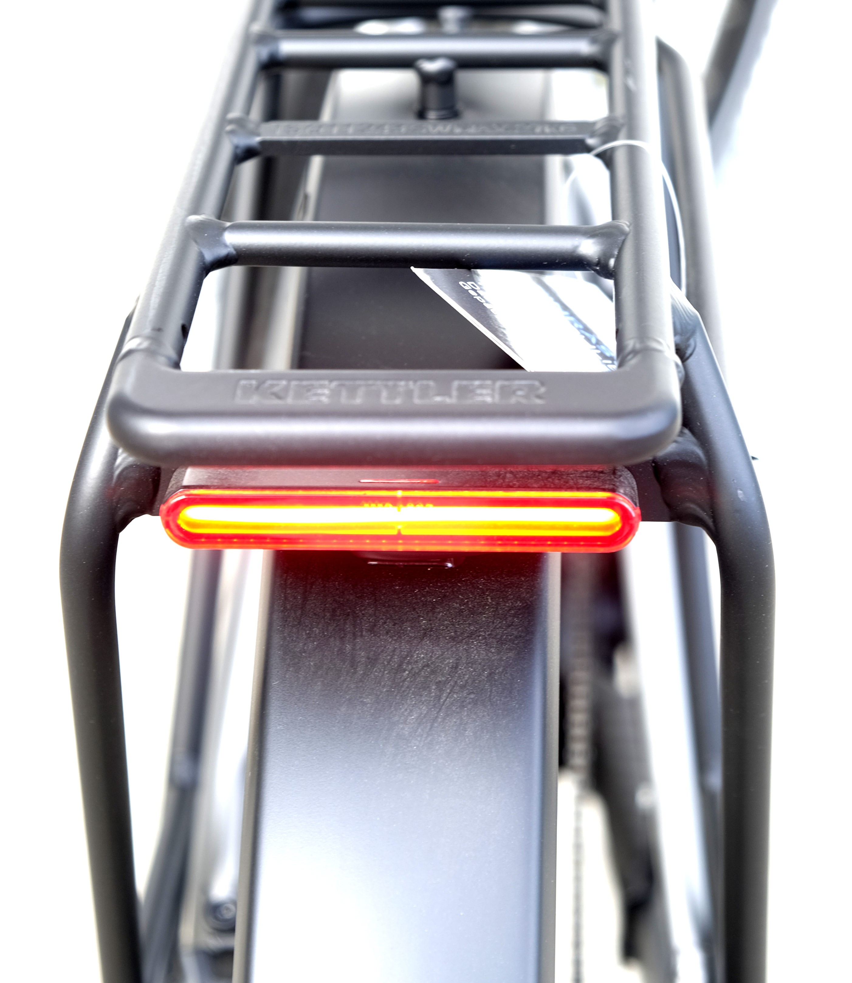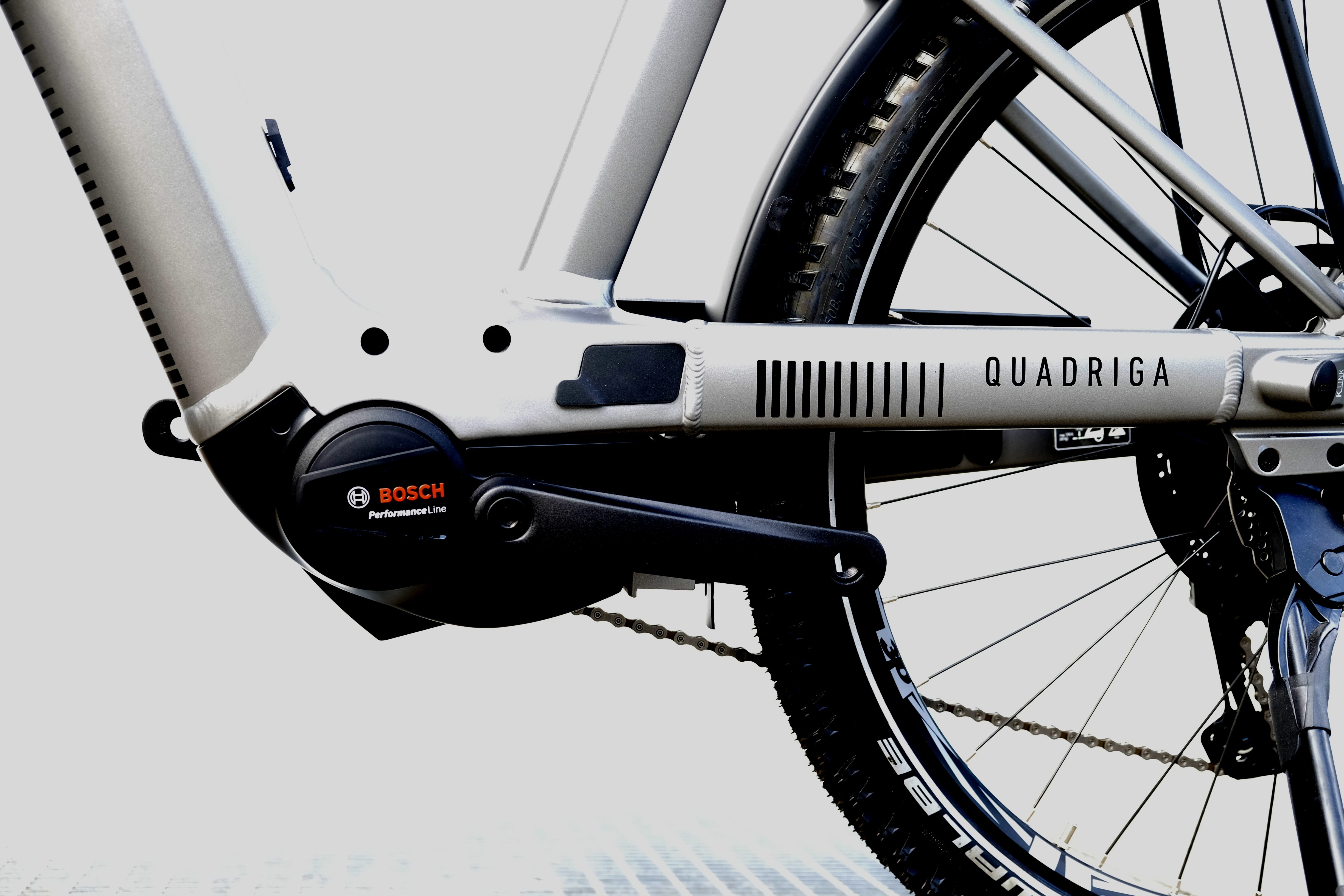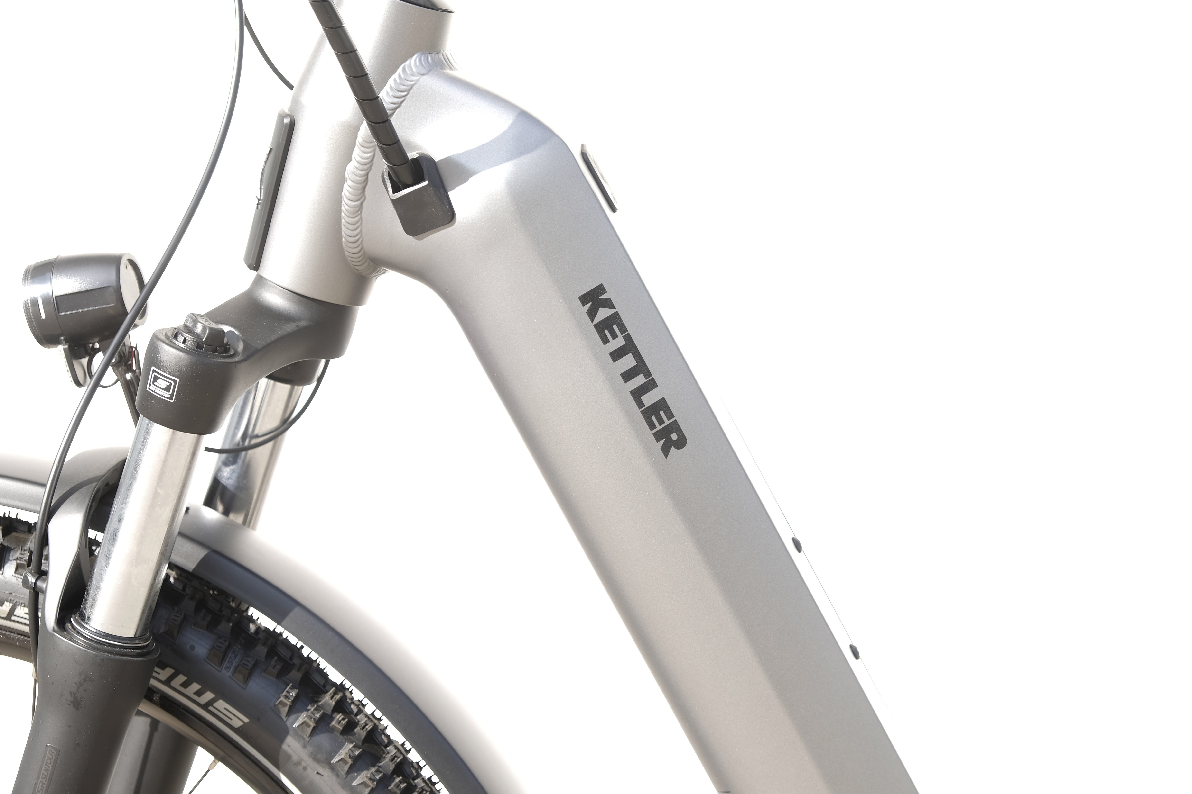 The latest Bosch Performance Line Cruise (Smart System) motor offers harmonious support. Combined with the SHIMANO Cues 10-speed gear system, the QUADRIGA TOWN & COUNTRY P10 is also equipped for demanding route profiles. The battery, available with 625 watt hours, is elegantly integrated into the slim down tube and provides plenty of energy. If more endurance is required, the model can easily be upgraded with a larger 750 Wh battery. The SCHWALBE Smart Sam Plus tyres ensure good rolling behaviour on natural paths, gravel roads and asphalt. The MonkeyLoad system pannier rack allows panniers to be mounted quickly and easily - everything fits with just one click. KETTLER's own K-Link coupling for a trailer completes the maximum suitability for everyday use.