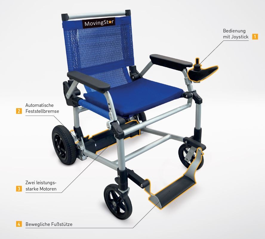 Der ultraleichte MovingStar 101 ist einer der ersten faltbaren Elektrorollstühle am Markt die unter 20 Kg wiegen.