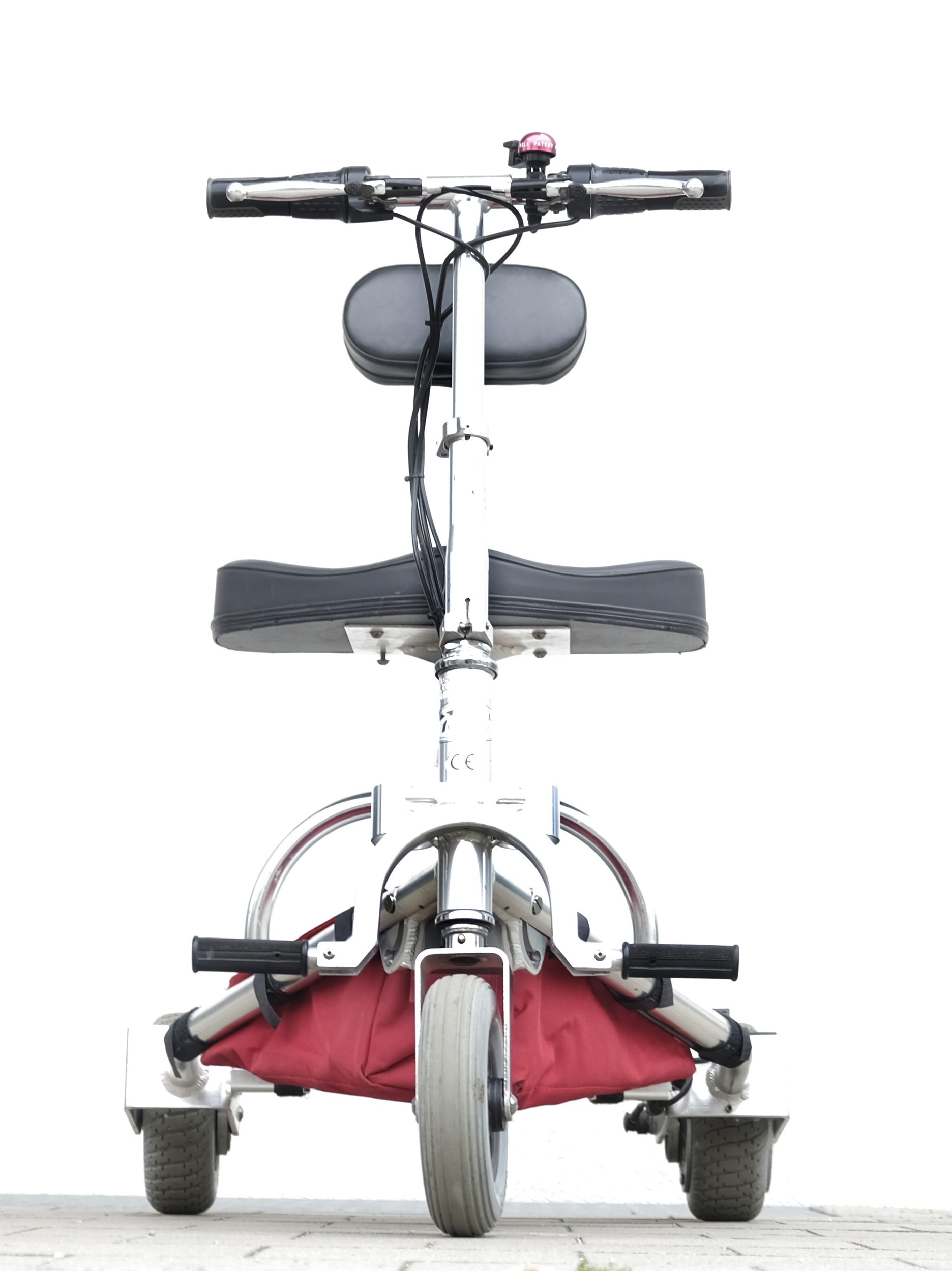 Lightweight mobility aid foldable unique popular design with 6km/h can also be used on pavements. Extremely light travel companion on three wheels for people with walking and circulatory impairments, puncture-proof polyurethane tyres.