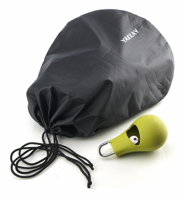 Safe One consists of a padlock moulded into a black silicone housing and a black protective bag with a discreet, light grey YAKKAY print.