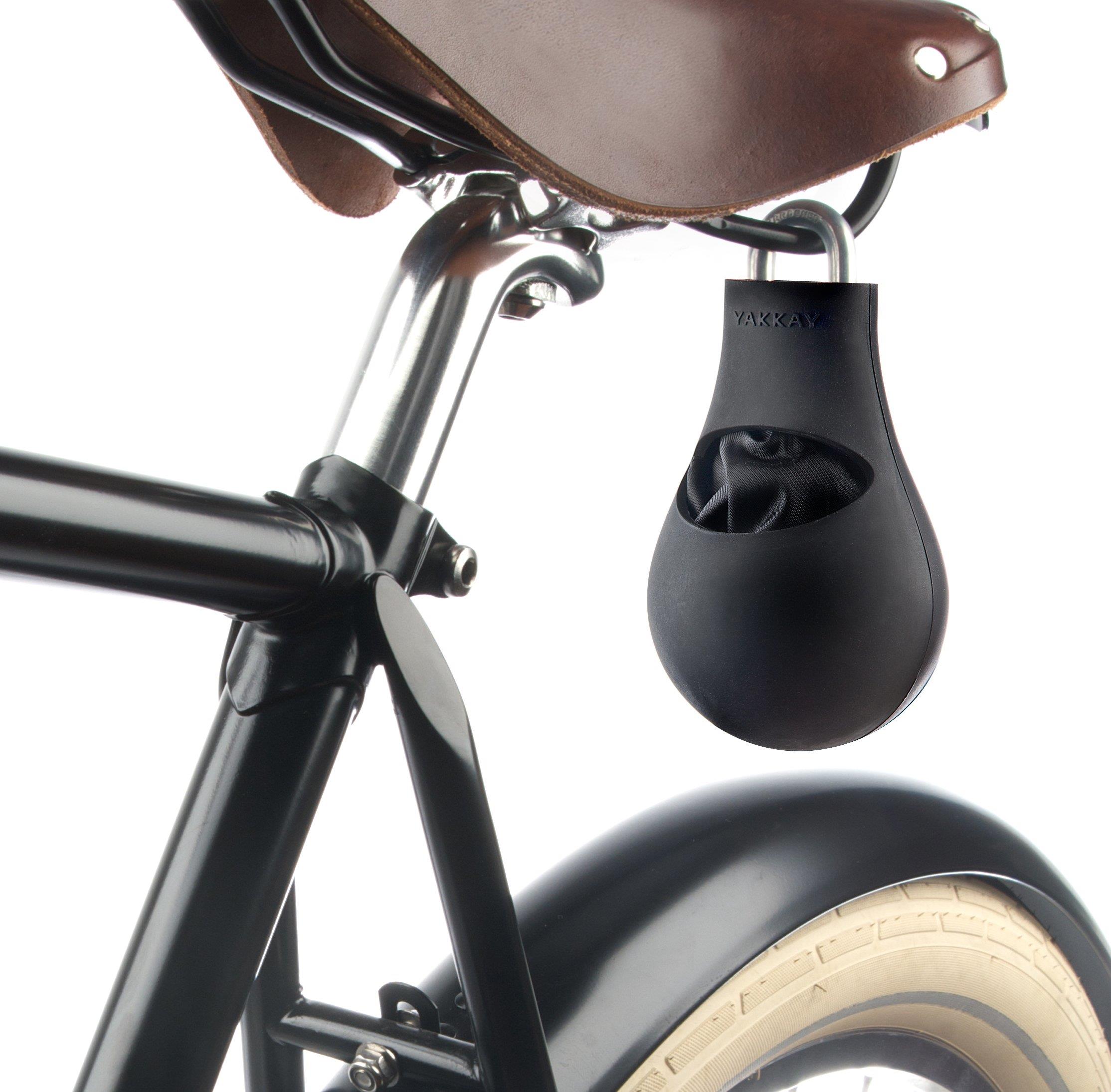 With the Safe One helmet lock from YAKKAY you can attach your bike helmet to your bike so that you don't have to take your helmet with you when you go shopping or have a cup of coffee. Safe One includes a protective bag to protect your helmet from dirt and rain.