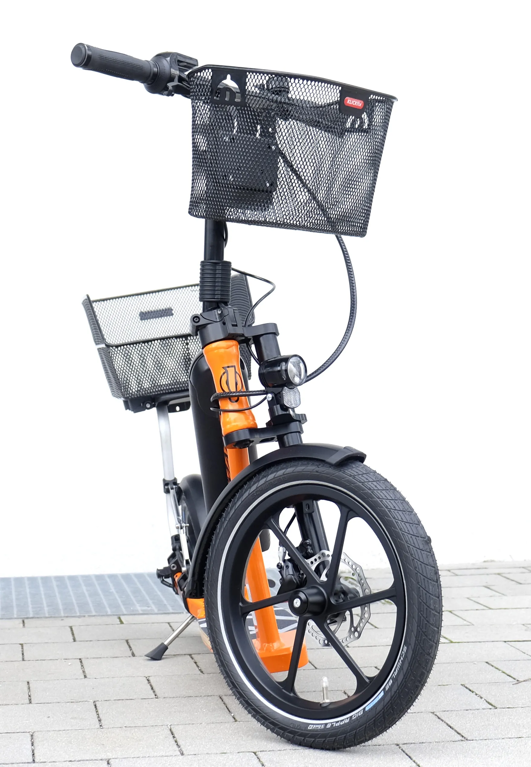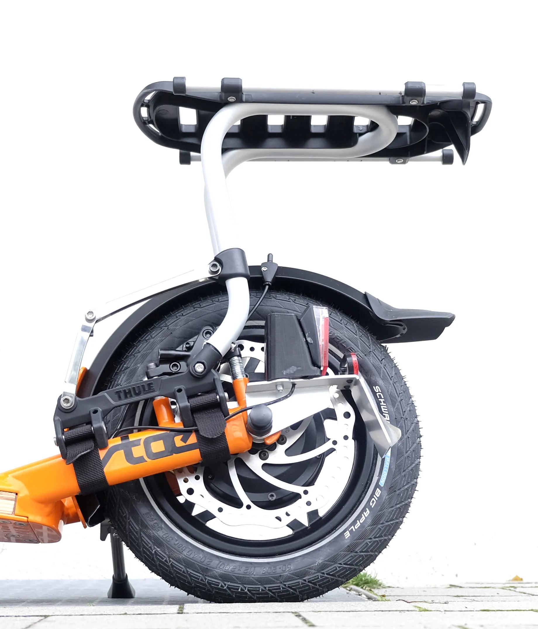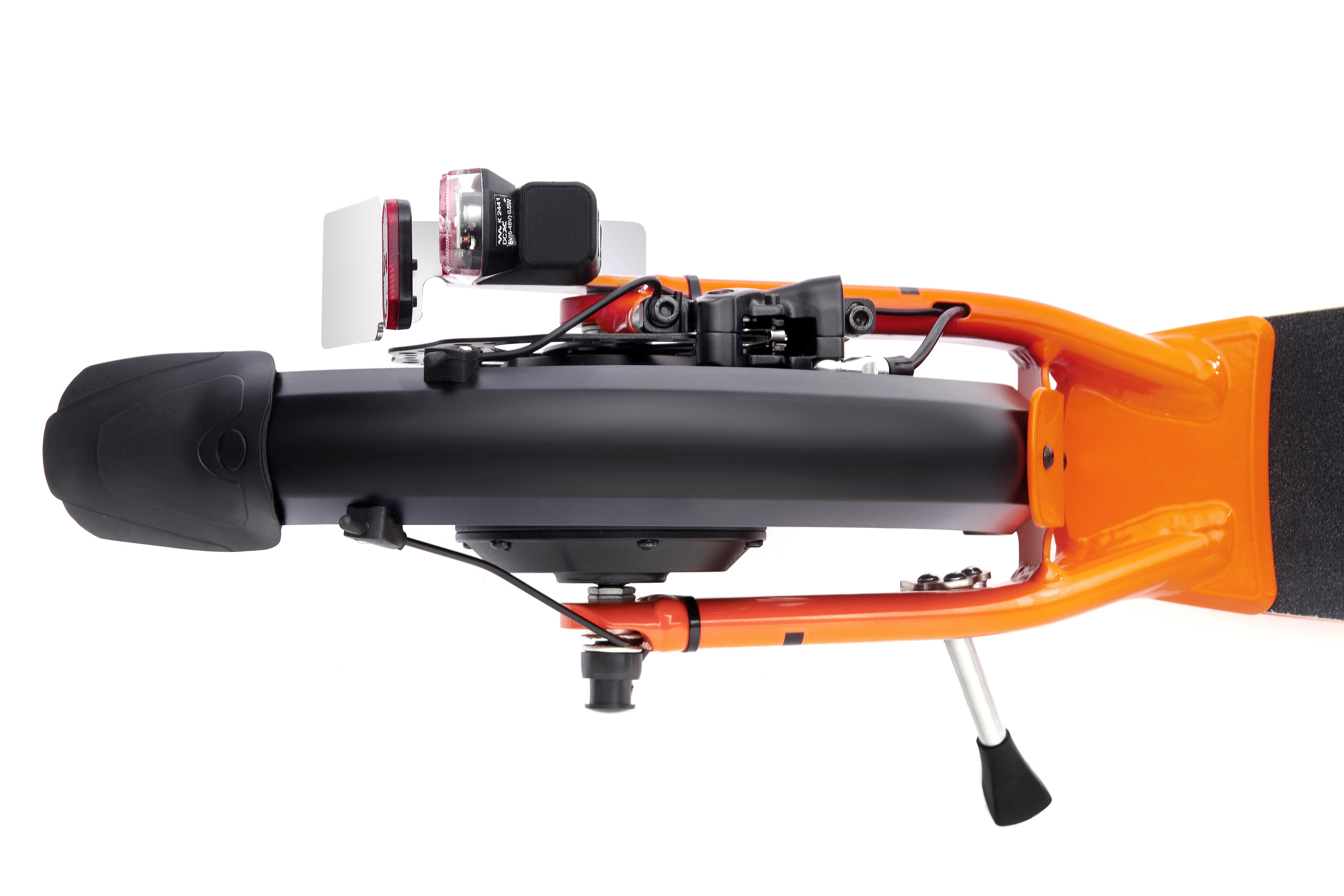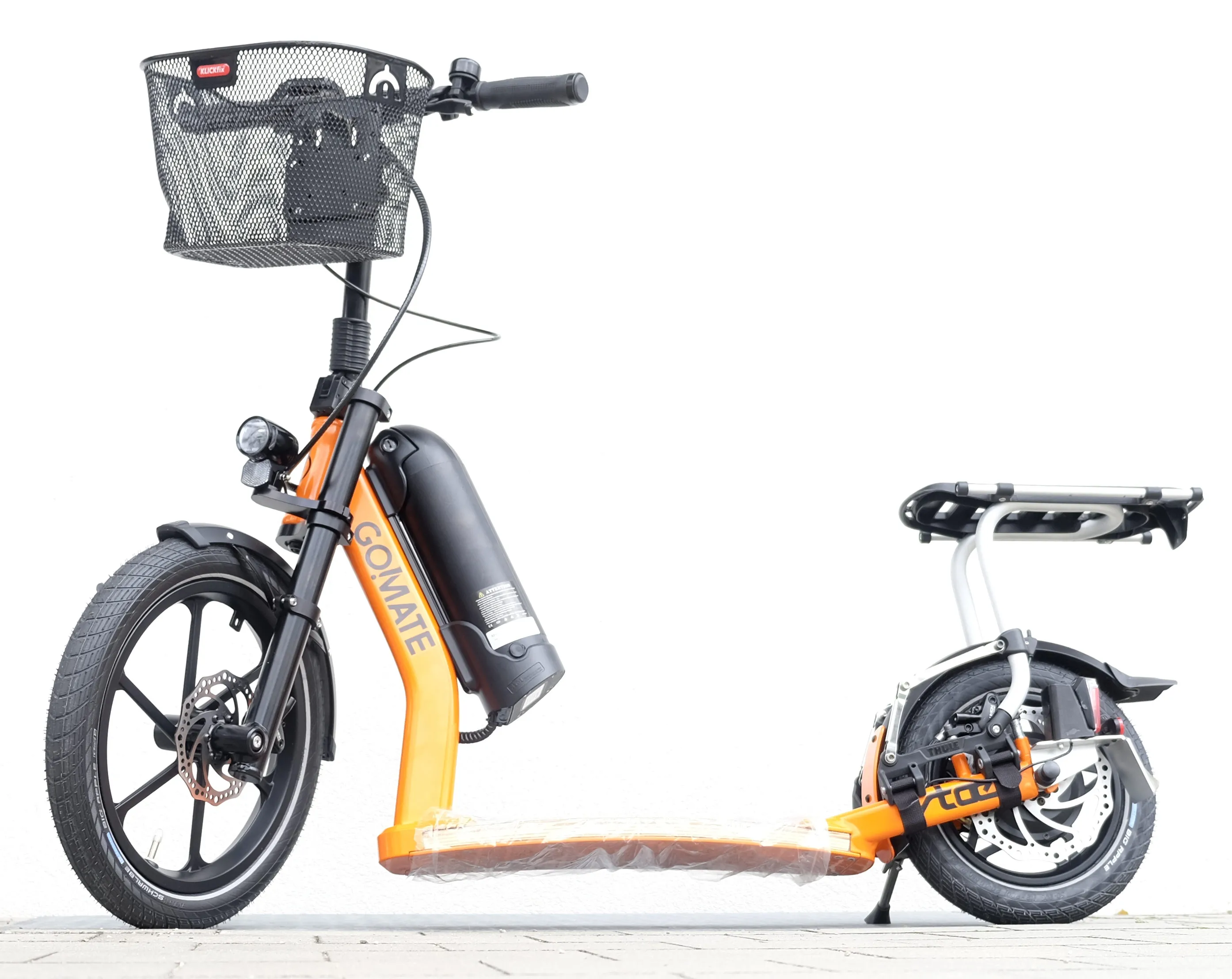 Insurance holder, front and rear lights and kickstand are already fitted.