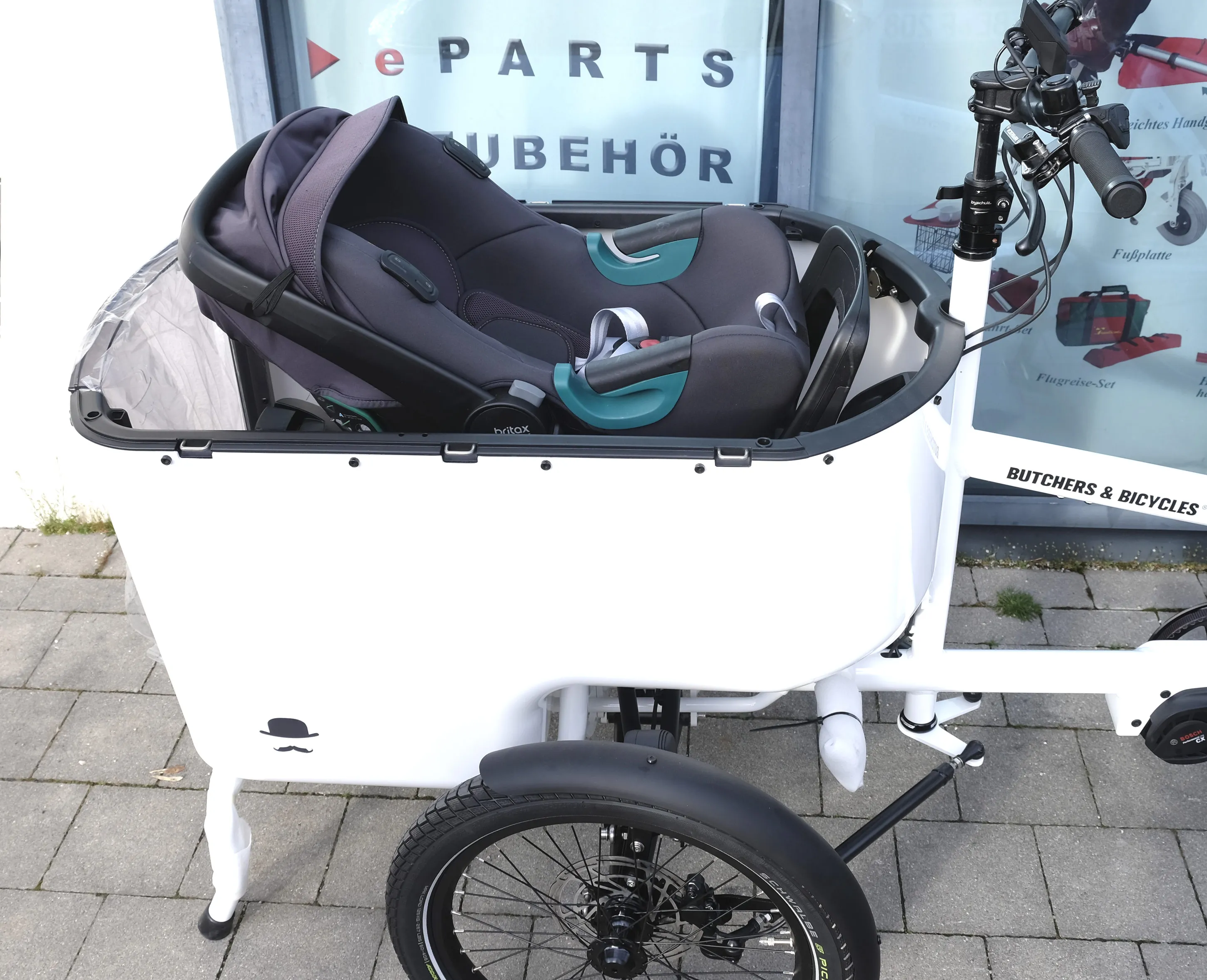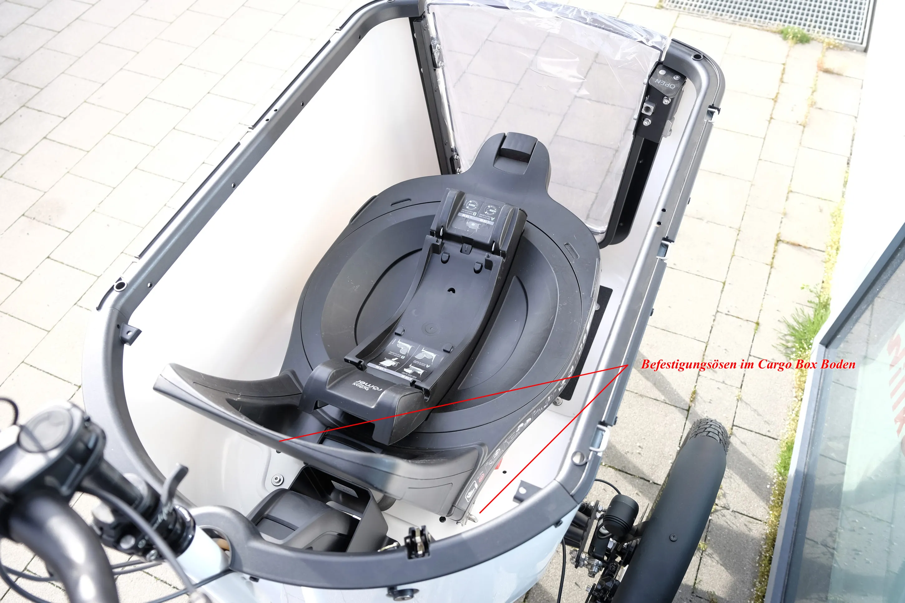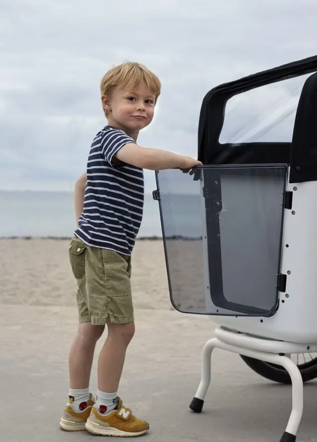 Gran volumenUtilización modularPuede utilizarse para transportar niños y cargasLa FLEXBOX 600/800 puede utilizarse para transportar niños y cargas de forma segura y cómoda. Para el uso modular con el FLEXBOX hay disponibles un BANCO DE ASIENTO y una CUBIERTA PARA LA LLUVIA (el banco de asiento y la cubierta para la lluvia no están incluidos en el volumen de suministro). El FLEXBOX puede montarse en todos los modelos de la serie CARGOLINE.
